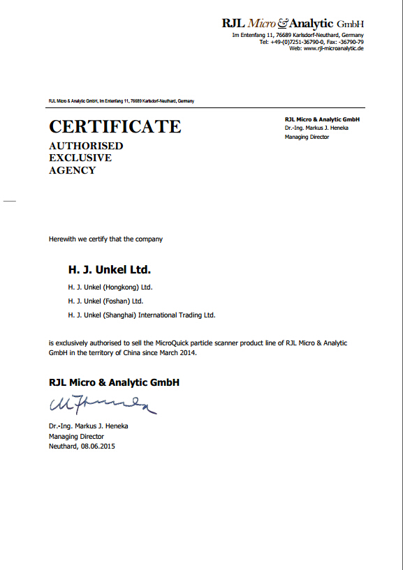 翁開爾公司與德國(guó)安捷萊RJL公司達(dá)成合作協(xié)議,翁開爾公司是德國(guó)安捷萊RJL公司的中國(guó)總代理。