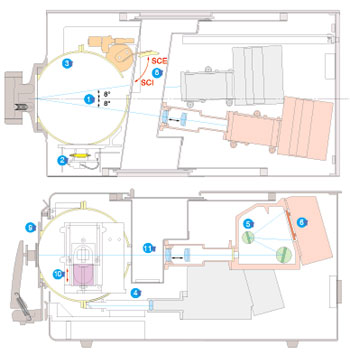 照明/受光系統(tǒng)符合CIE、ISO、ASTM、DIN和JIS的d/8(漫射照明,8度接收)光學(xué)結(jié)構(gòu), CIE,ASTM,DIN和JIS的透射結(jié)構(gòu)。