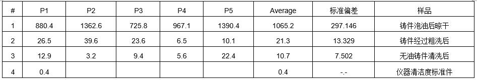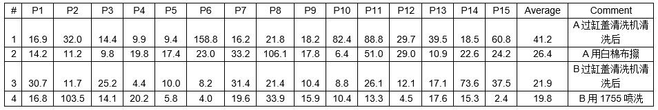 編號4 測試目的:氣缸體在清洗前,粗洗后,粗選后的清潔度差異